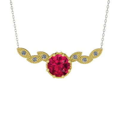 Rodolit garnet ve pırlanta 14 ayar altın kolye (0.12 karat, 40 cm gümüş rolo zincir)
