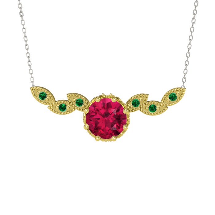 Rodolit garnet ve yeşil kuvars 18 ayar altın kolye (40 cm gümüş rolo zincir)