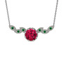 Rodolit garnet ve yeşil kuvars 18 ayar beyaz altın kolye (40 cm gümüş rolo zincir)