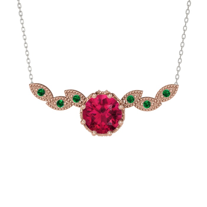 Rodolit garnet ve yeşil kuvars 925 ayar rose altın kaplama gümüş kolye (40 cm beyaz altın rolo zincir)