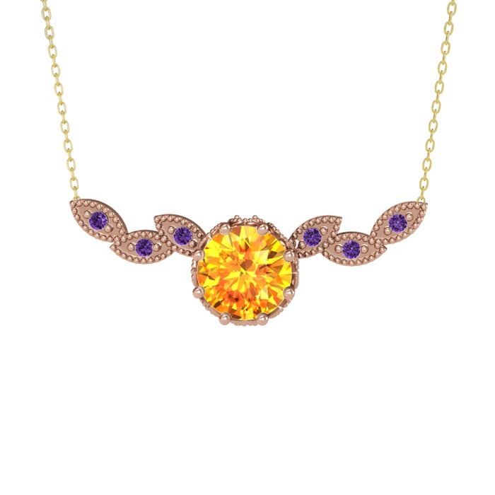 Sitrin ve ametist 14 ayar rose altın kolye (40 cm altın rolo zincir)