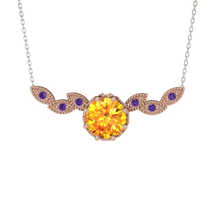 Sitrin ve ametist 925 ayar rose altın kaplama gümüş kolye (40 cm beyaz altın rolo zincir)