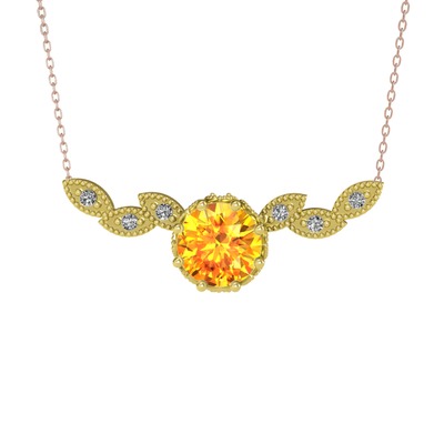 Sitrin ve beyaz zirkon 18 ayar altın kolye (40 cm gümüş rolo zincir)