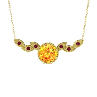 Sitrin ve kök yakut 8 ayar altın kolye (40 cm gümüş rolo zincir)