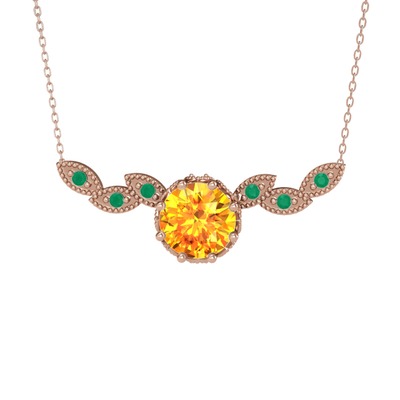 Sitrin ve kök zümrüt 18 ayar rose altın kolye (40 cm rose altın rolo zincir)