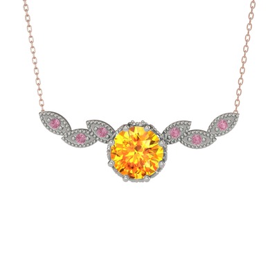 Sitrin ve pembe kuvars 8 ayar beyaz altın kolye (40 cm gümüş rolo zincir)