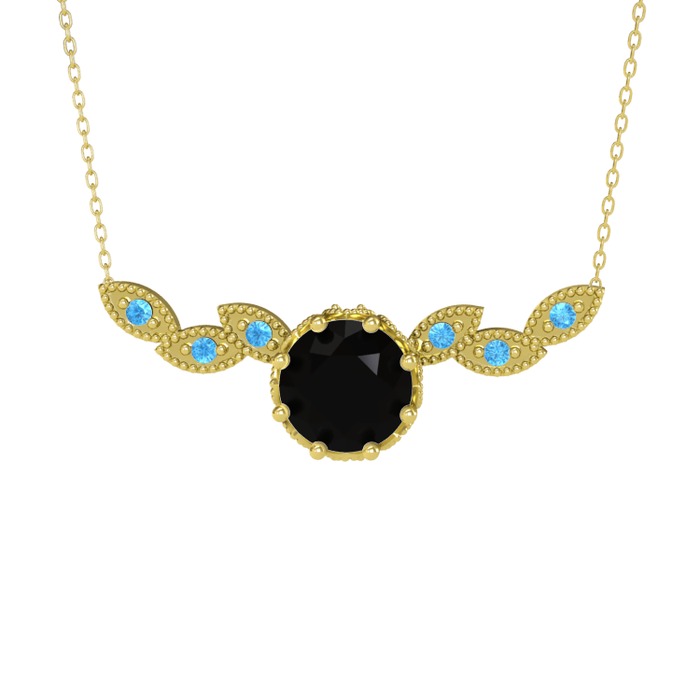 Siyah zirkon ve akuamarin 18 ayar altın kolye (40 cm altın rolo zincir)
