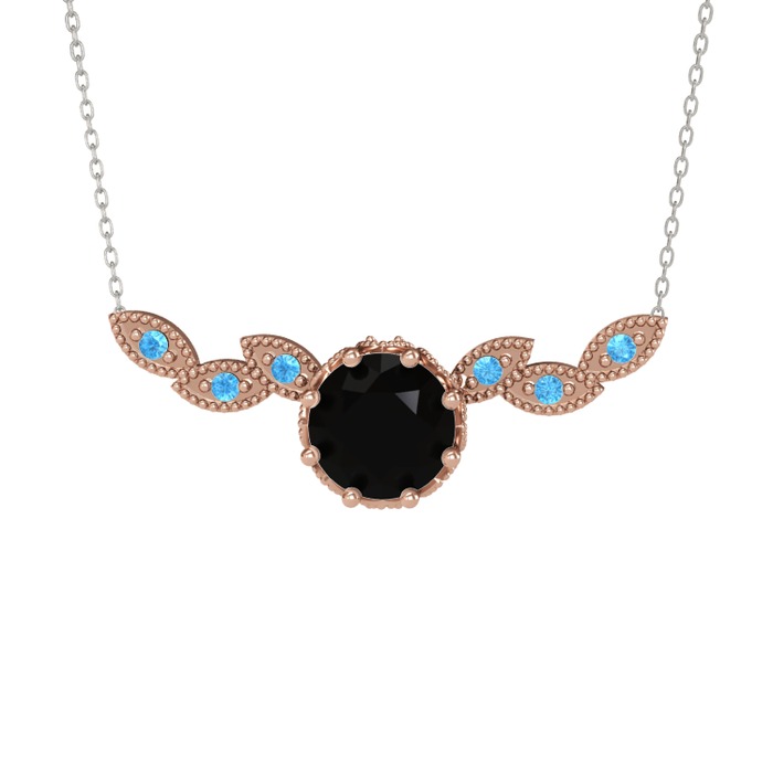 Siyah zirkon ve akuamarin 925 ayar rose altın kaplama gümüş kolye (40 cm gümüş rolo zincir)
