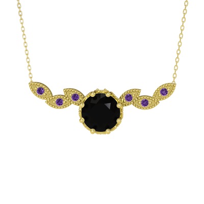 Siyah zirkon ve ametist 14 ayar altın kolye (40 cm altın rolo zincir)