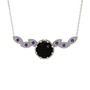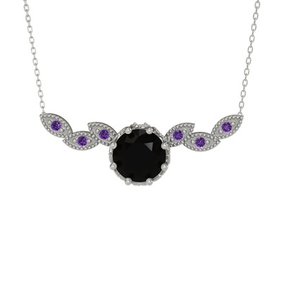 Siyah zirkon ve ametist 14 ayar beyaz altın kolye (40 cm beyaz altın rolo zincir)