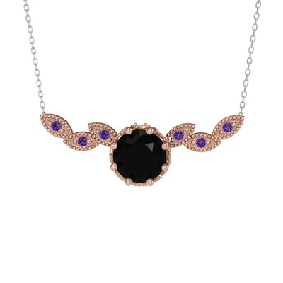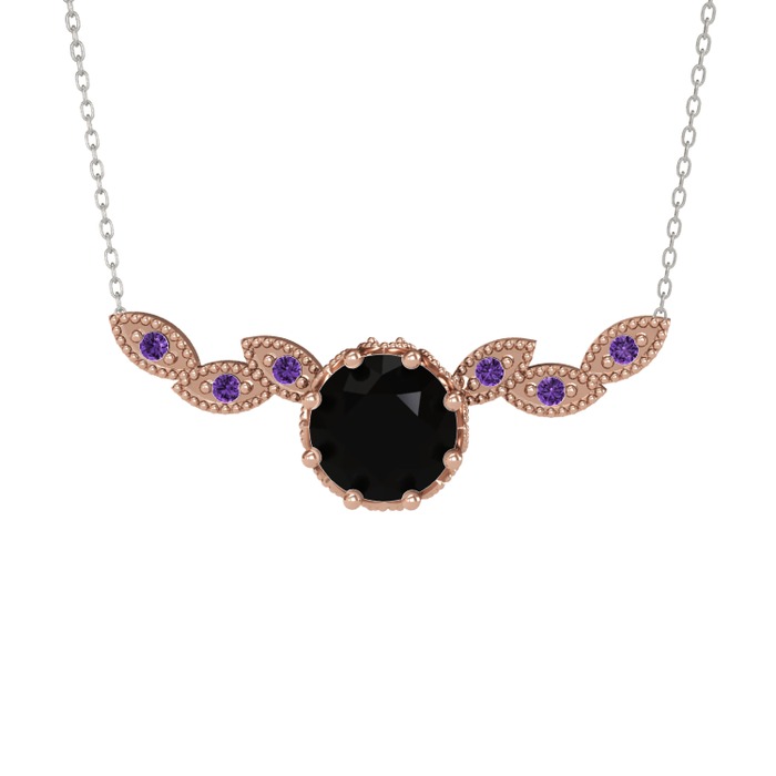 Siyah zirkon ve ametist 925 ayar rose altın kaplama gümüş kolye (40 cm beyaz altın rolo zincir)