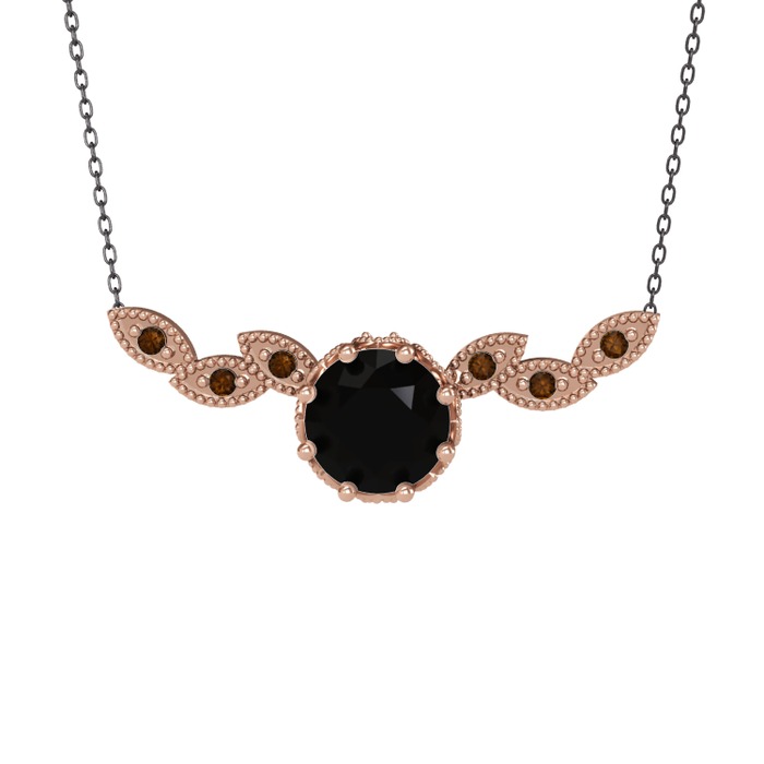 Siyah zirkon ve dumanlı kuvars 925 ayar rose altın kaplama gümüş kolye (40 cm gümüş rolo zincir)