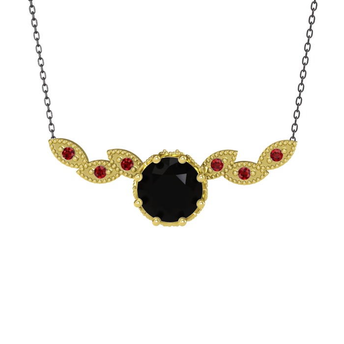Siyah zirkon ve garnet 14 ayar altın kolye (40 cm gümüş rolo zincir)