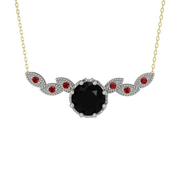 Siyah zirkon ve garnet 8 ayar beyaz altın kolye (40 cm altın rolo zincir)