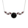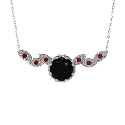 Siyah zirkon ve kök yakut 8 ayar beyaz altın kolye (40 cm beyaz altın rolo zincir)
