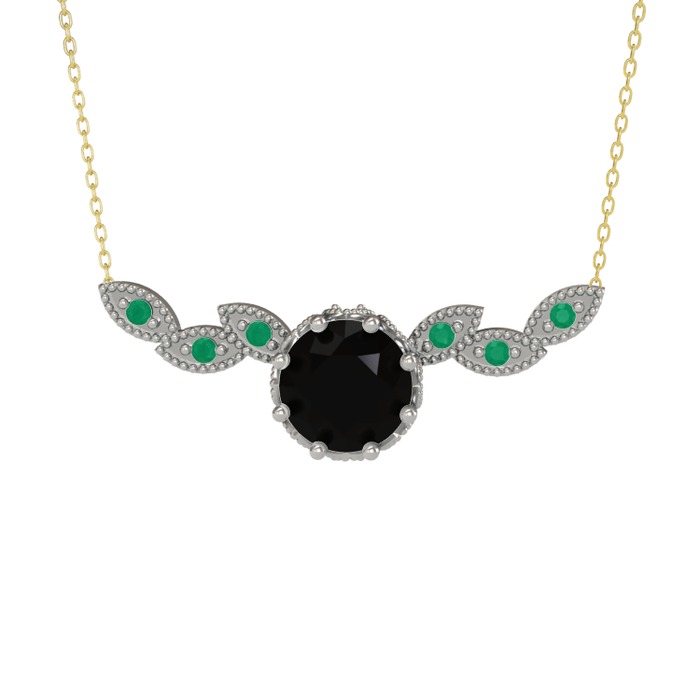 Siyah zirkon ve kök zümrüt 925 ayar gümüş kolye (40 cm altın rolo zincir)