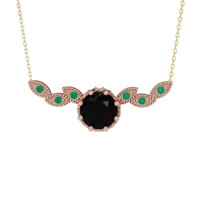 Siyah zirkon ve kök zümrüt 925 ayar rose altın kaplama gümüş kolye (40 cm gümüş rolo zincir)