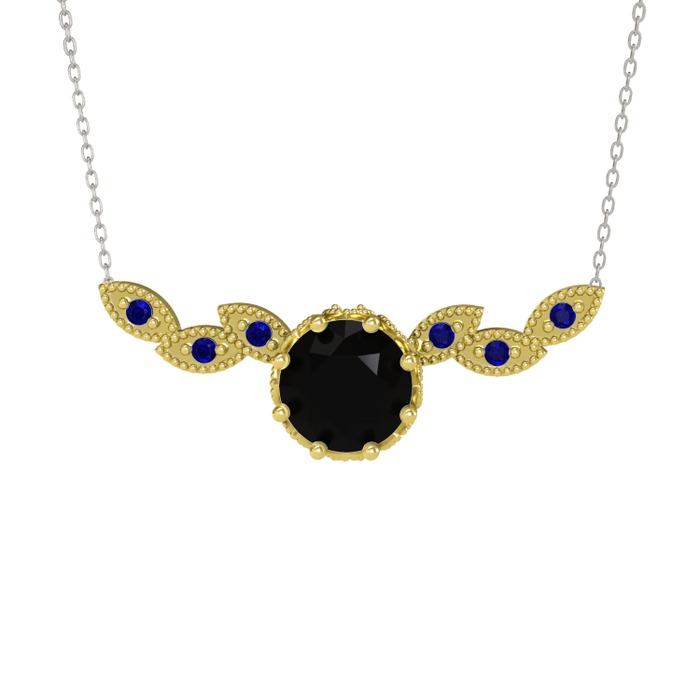 Siyah zirkon ve lab safir 18 ayar altın kolye (40 cm gümüş rolo zincir)