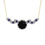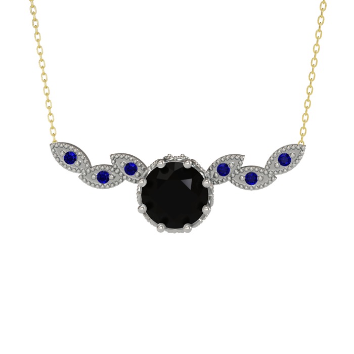 Siyah zirkon ve lab safir 18 ayar beyaz altın kolye (40 cm gümüş rolo zincir)