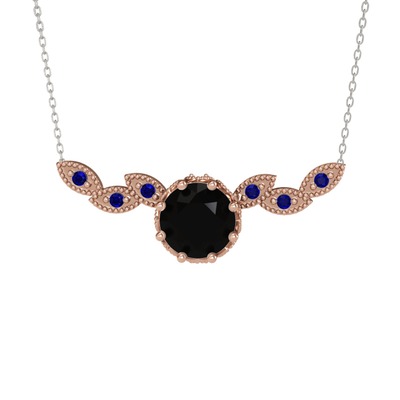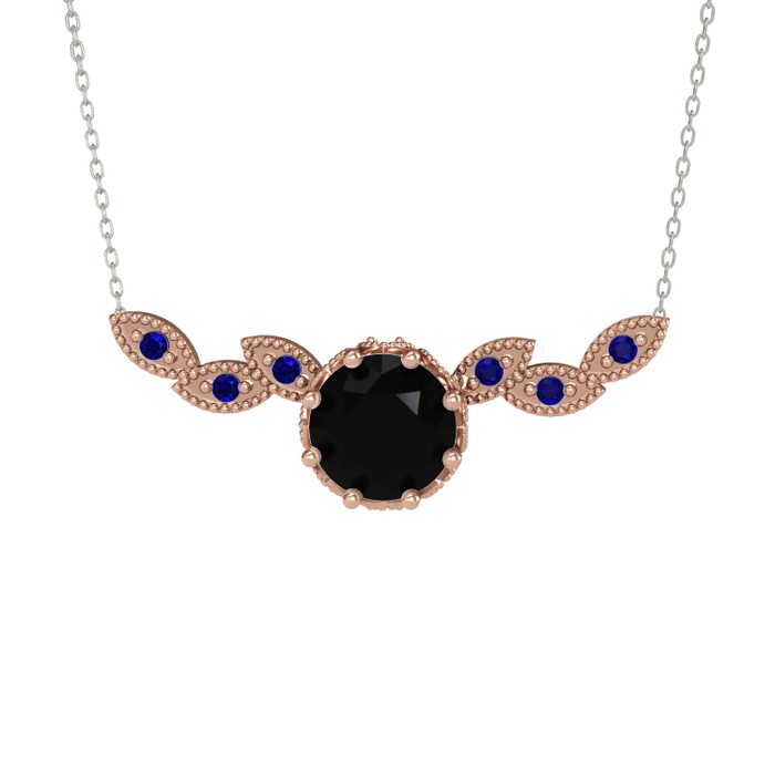 Siyah zirkon ve lab safir 8 ayar rose altın kolye (40 cm beyaz altın rolo zincir)