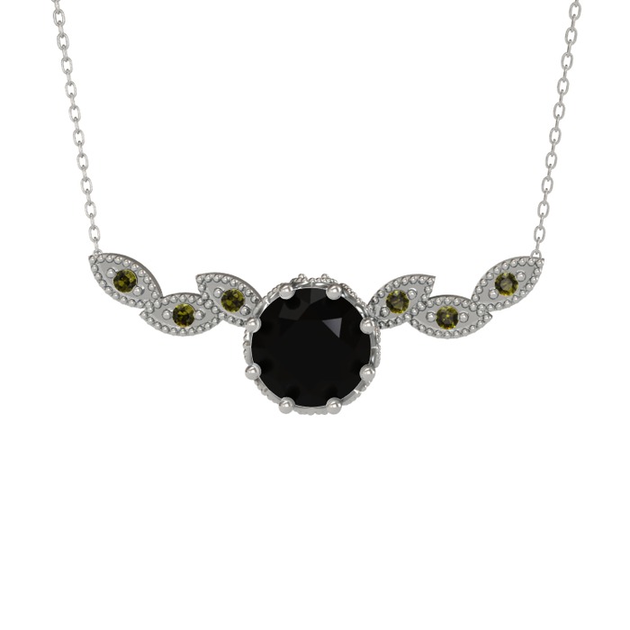 Siyah zirkon ve peridot 18 ayar beyaz altın kolye (40 cm beyaz altın rolo zincir)