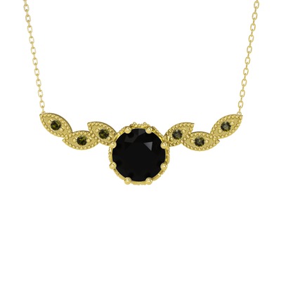 Siyah zirkon ve peridot 8 ayar altın kolye (40 cm altın rolo zincir)