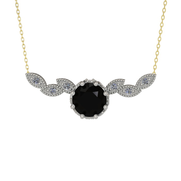 Siyah zirkon ve pırlanta 925 ayar gümüş kolye (0.12 karat, 40 cm altın rolo zincir)