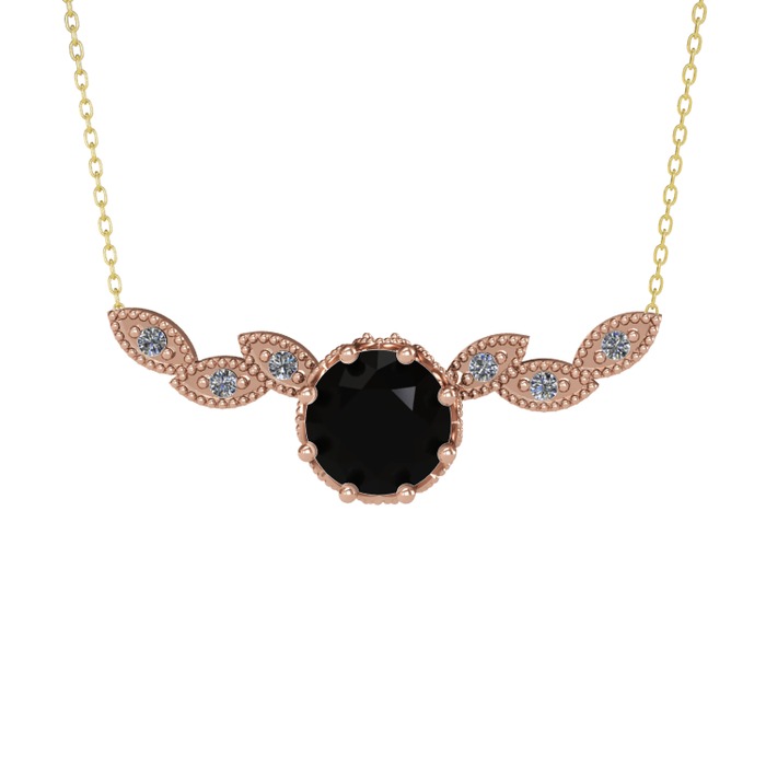 Siyah zirkon ve pırlanta 925 ayar rose altın kaplama gümüş kolye (0.12 karat, 40 cm altın rolo zincir)