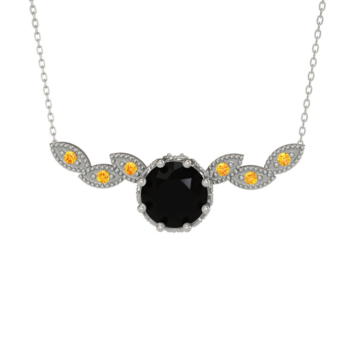 Siyah zirkon ve sitrin 8 ayar beyaz altın kolye (40 cm beyaz altın rolo zincir)
