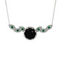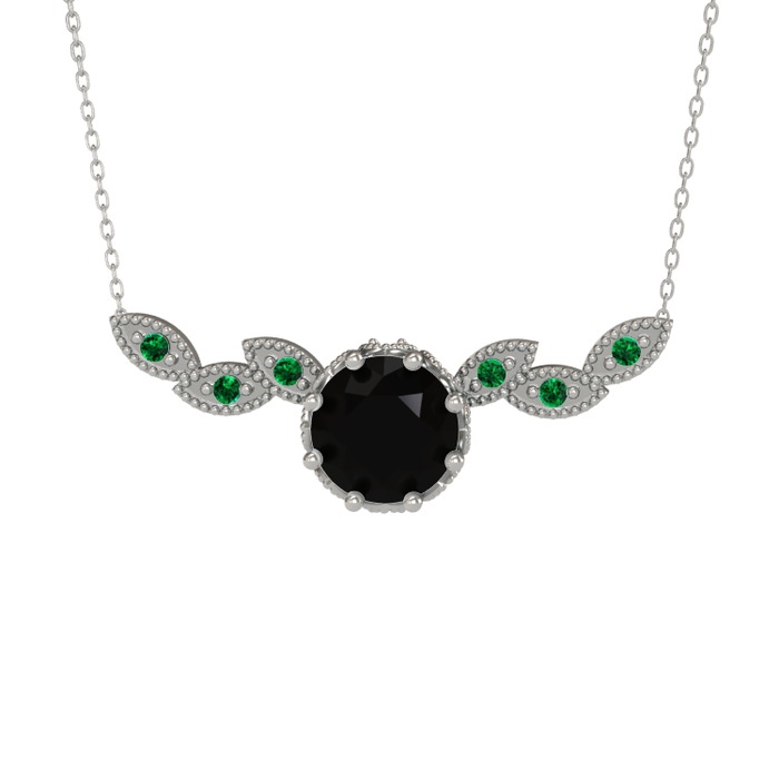 Siyah zirkon ve yeşil kuvars 14 ayar beyaz altın kolye (40 cm beyaz altın rolo zincir)