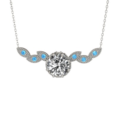 Swarovski ve akuamarin 14 ayar beyaz altın kolye (40 cm gümüş rolo zincir)