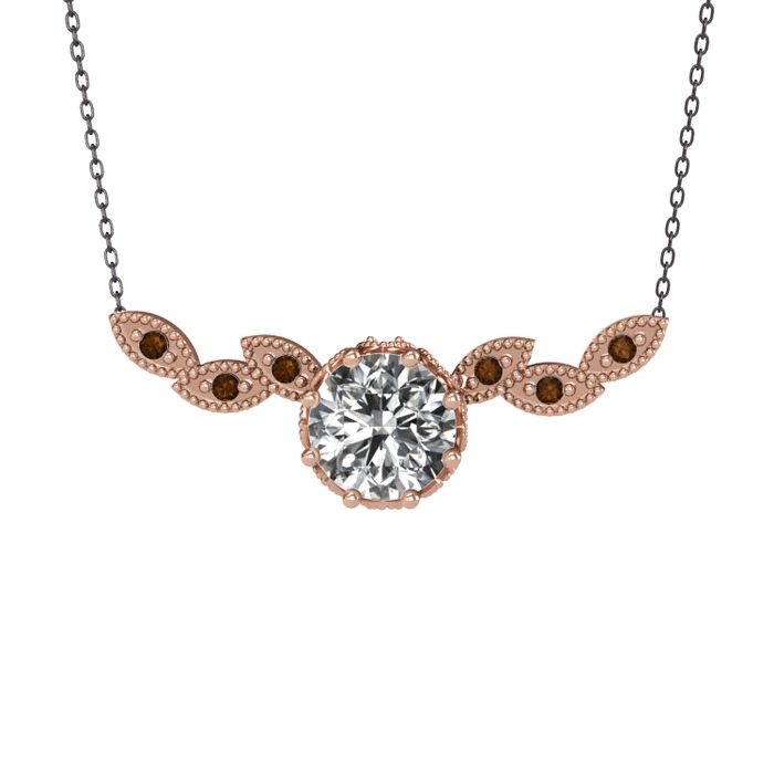 Swarovski ve dumanlı kuvars 8 ayar rose altın kolye (40 cm gümüş rolo zincir)