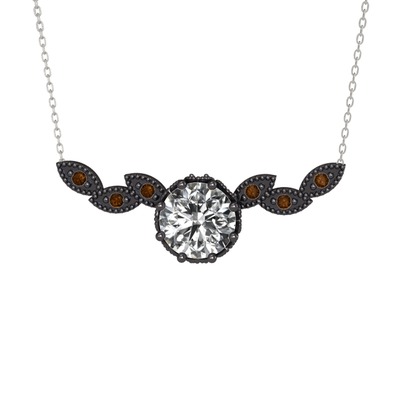 Swarovski ve dumanlı kuvars 925 ayar siyah rodyum kaplama gümüş kolye (40 cm gümüş rolo zincir)