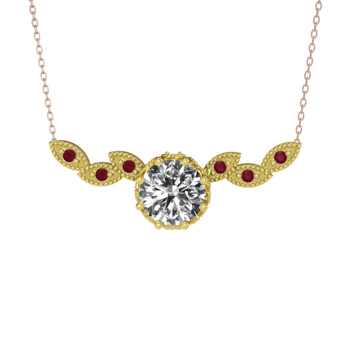 Swarovski ve kök yakut 18 ayar altın kolye (40 cm gümüş rolo zincir)