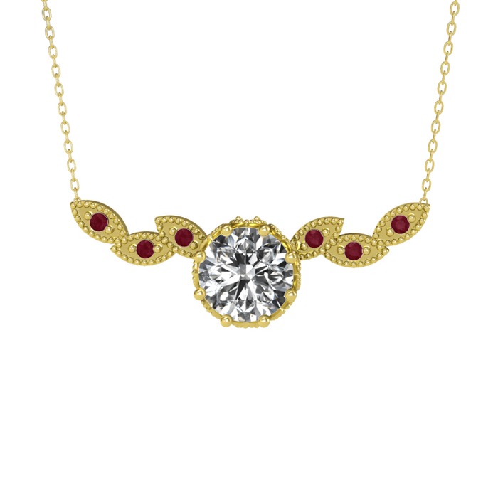 Swarovski ve kök yakut 8 ayar altın kolye (40 cm gümüş rolo zincir)