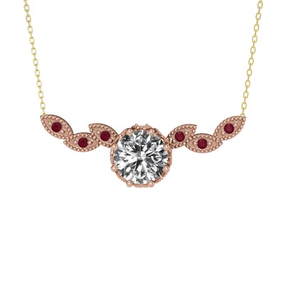 Swarovski ve kök yakut 925 ayar rose altın kaplama gümüş kolye (40 cm gümüş rolo zincir)