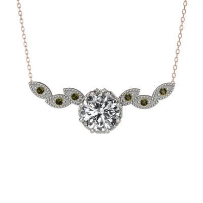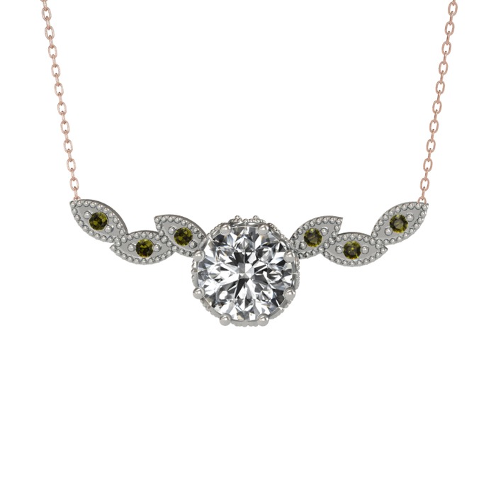 Swarovski ve peridot 14 ayar beyaz altın kolye (40 cm rose altın rolo zincir)