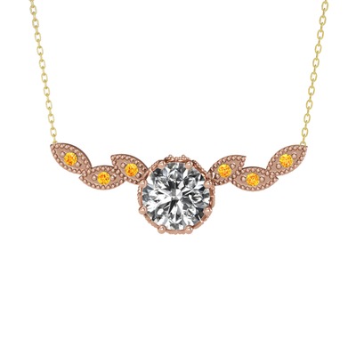 Swarovski ve sitrin 18 ayar rose altın kolye (40 cm altın rolo zincir)
