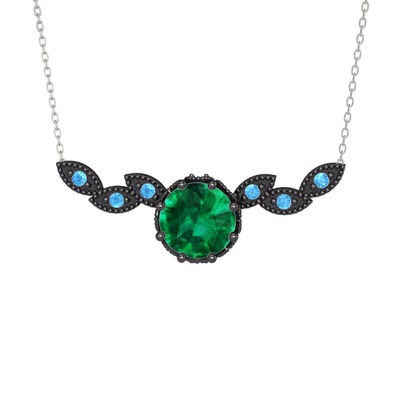 Yeşil kuvars ve akuamarin 925 ayar siyah rodyum kaplama gümüş kolye (40 cm beyaz altın rolo zincir)