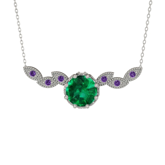 Yeşil kuvars ve ametist 18 ayar beyaz altın kolye (40 cm beyaz altın rolo zincir)