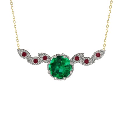 Yeşil kuvars ve kök yakut 8 ayar beyaz altın kolye (40 cm altın rolo zincir)