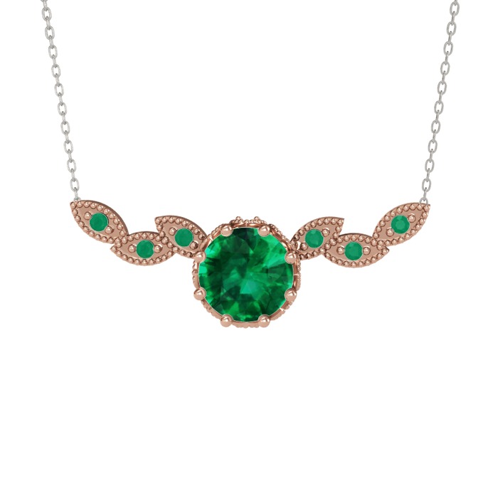 Yeşil kuvars ve kök zümrüt 14 ayar rose altın kolye (40 cm gümüş rolo zincir)