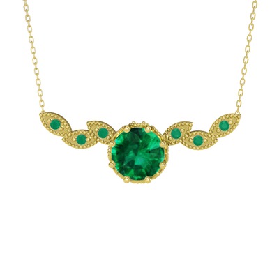 Yeşil kuvars ve kök zümrüt 8 ayar altın kolye (40 cm altın rolo zincir)