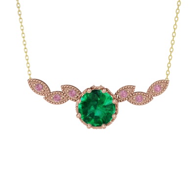 Yeşil kuvars ve pembe kuvars 925 ayar rose altın kaplama gümüş kolye (40 cm altın rolo zincir)
