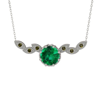 Yeşil kuvars ve peridot 18 ayar beyaz altın kolye (40 cm beyaz altın rolo zincir)