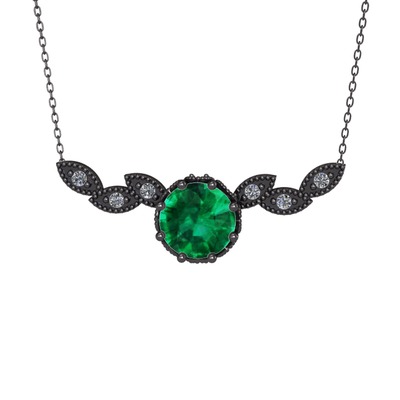 Yeşil kuvars ve pırlanta 925 ayar siyah rodyum kaplama gümüş kolye (0.12 karat, 40 cm gümüş rolo zincir)