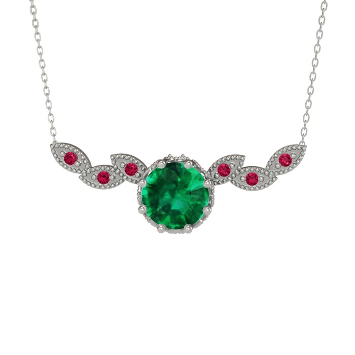 Yeşil kuvars ve rodolit garnet 18 ayar beyaz altın kolye (40 cm beyaz altın rolo zincir)