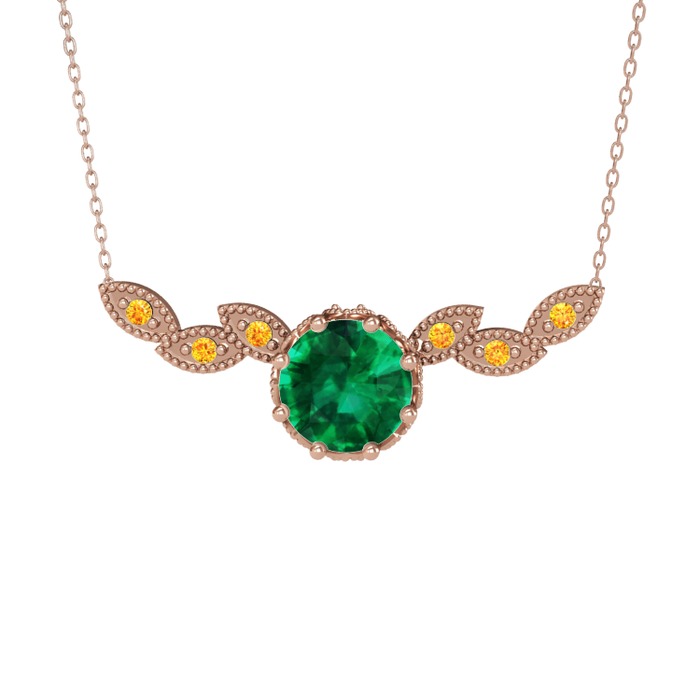 Yeşil kuvars ve sitrin 14 ayar rose altın kolye (40 cm rose altın rolo zincir)