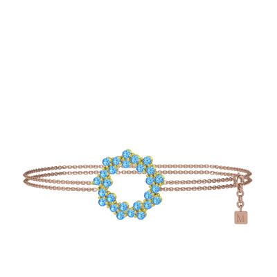 Akuamarin 8 ayar altın bilezik (40 cm rose altın rolo zincir)