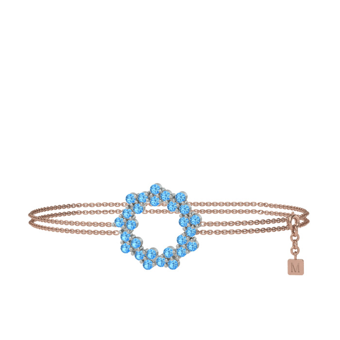 Akuamarin 925 ayar gümüş bilezik (40 cm rose altın rolo zincir)